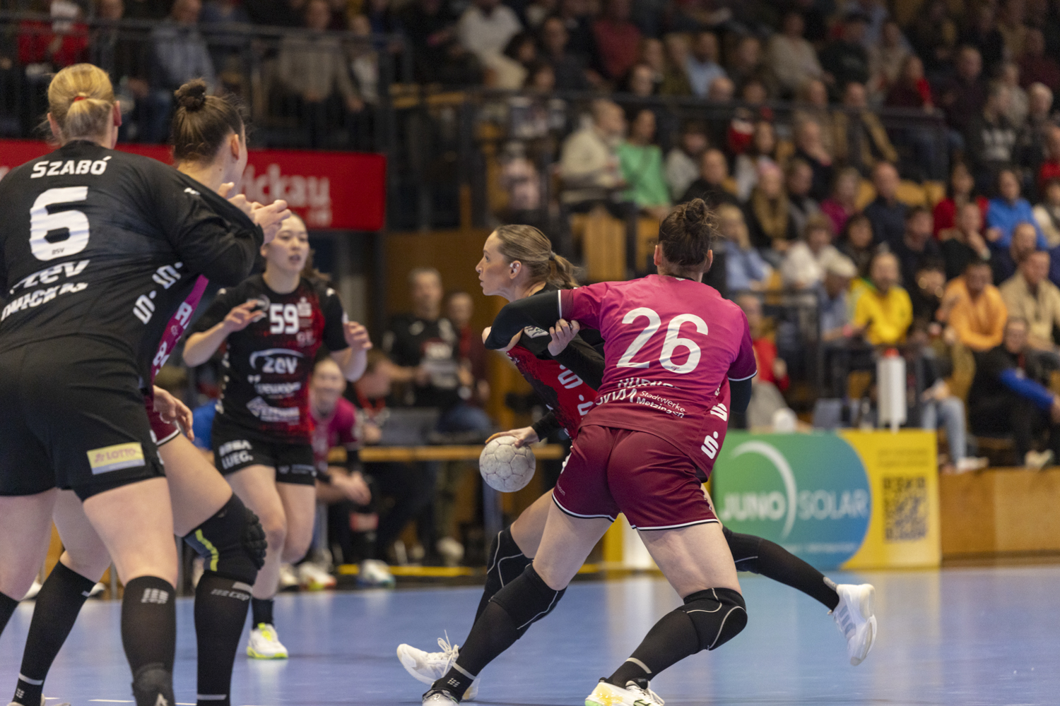 Vor dem Seitenwechsel muss Norman Rentsch in der Kabine die richtigen Worte gefunden haben, da seine Frauen wie ausgewechselt auf die Platte zurückkehrten. Tore durch Brons Petersen, eines davon von der Strafwurflinie, und Penzes brachten den BSV heran. Nach einer kurzzeitigen Spielunterbrechung durch den Ausfall der Anzeigetafeln verwandelte erneut Brons Petersen aus sieben Metern zum umjubelten 18:18-Ausgleich. In der Folgezeit pendelte sich der Spielstand bei maximal zwei Toren Rückstand für Zwickau ein. Immer wieder gelang auch der Ausgleich, jedoch während des gesamten Spiels nie eine Führung der Gastgeberinnen. Spannung pur bot die Schlussphase, die wie schon in den letzten beiden Heimspielen nichts für Herzpatienten war. Den unbedingten Willen auf Zwickauer Seite, etwas Zählbares mitzunehmen, spiegelt eine Szene aus der 54. Minute wieder. Nakayama fing einen gegnerischen Angriff ab, passte maßgenau auf Penzes, die die kraftvoll zum Tor ziehende Brons Petersen bediente, die zum 28:28 abschloss. Bemerkenswert, wie Kapitänin Laura Szabo, Verantwortung übernahm. Mit nicht einmal mehr zwei Minuten auf der Uhr, schnappte sie sich den Ball für einen Siebenmeter, obwohl sie kurz zuvor aus dem Spiel heraus an Keeperin Weiss gescheitert war. Nervenstark markierte sie das 31:31. Nach einer Metzingen Auszeit brachte Naina Klein die Tussies erneut in Führung. 31 Sekunden vor Ende der Spielzeit nahm Rentsch seine letzte ihm zur Verfügung stehende Auszeit. Den nächsten Angriff vollendete wiederum Brons Petersen unwiderstehlich zum 32:32. Die letzten Sekunden verteidigte der BSV aufopferungsvoll bis zu einem finalen direkten Freiwurf in der unmittelbar vor Abpfiff. Für Konfusion sorgten die Schiedsrichter, die vor der Ausführung zum Erstaunen eines Großteils des Publikums nacheinander mit Viktoria Hasselbusch und Laura Szabo zwei der körperlich präsentesten Spielerinnen auf die Strafbank setzten. Unter dem Jubel der 1200 Zuschauer landete der Wurfversuch Metzingens in den Armen der dezimierten Abwehr. Durch eine immense Steigerung in der zweiten Halbzeit verdienten sich der BSV den erkämpften Punkt redlich.